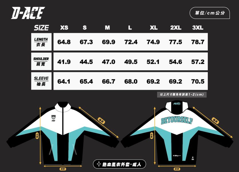 風衣外套尺寸參考: